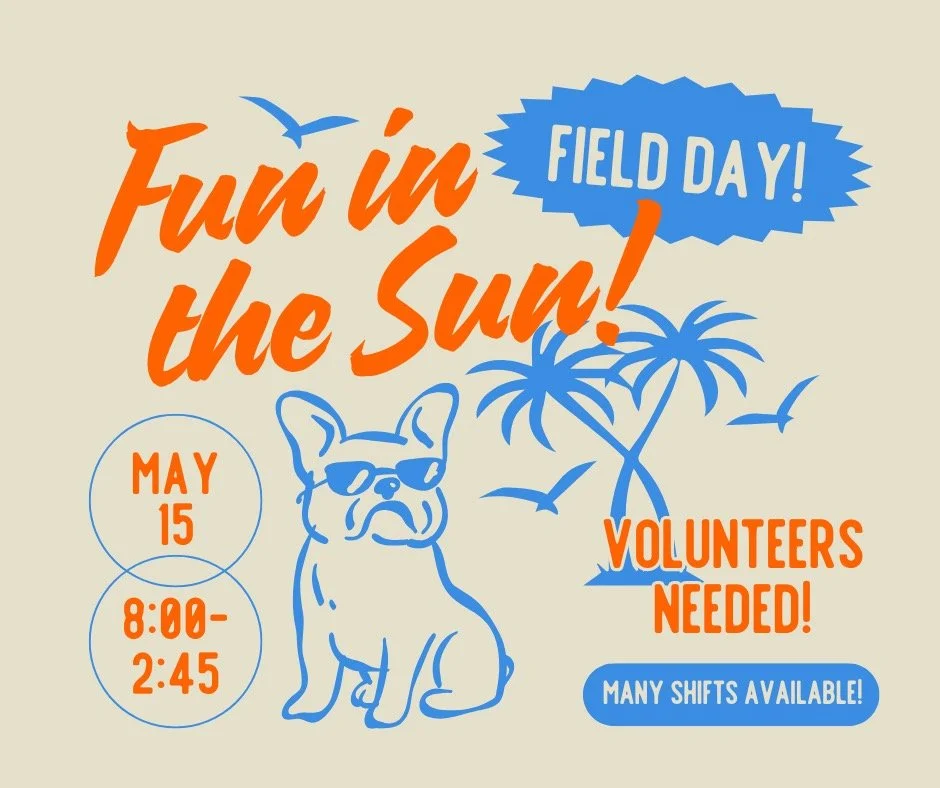 WB Field Day is coming up on May 15th and this year's theme is BEACH games! Coach Edwards and Coach Dison have an awesome day planned for our kids. To make it a success we need LOTS of parent volunteers!